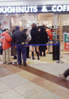 都会は並んだだけでドーナツがもらえると!