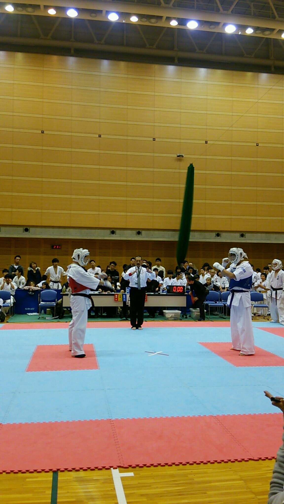 門先生の隣にいる鈴木先生とボクがセコンドに入らせてもらいました。